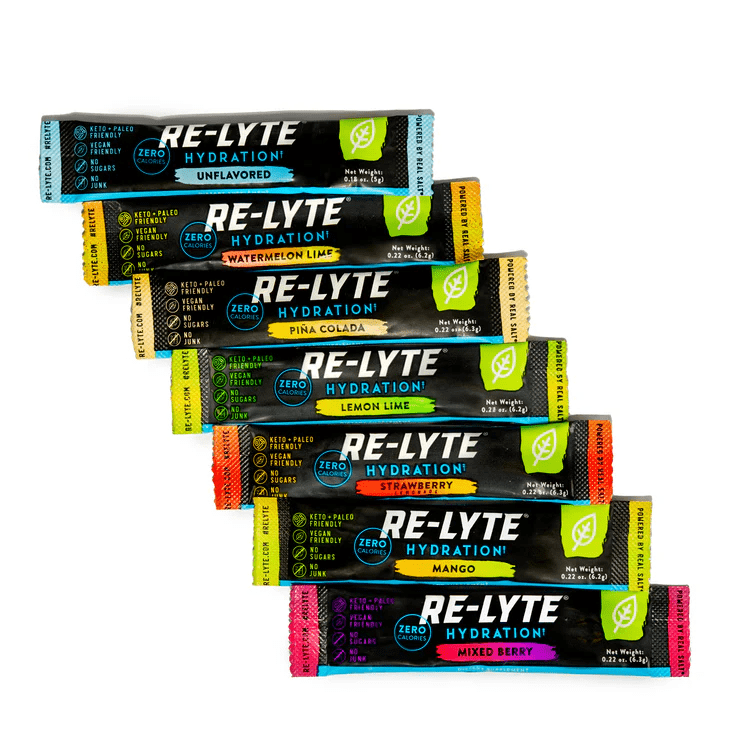 Re-Lyte Hydration Stick Pack – Variety delivers clean, mineral-based electrolytes in multiple flavors for natural hydration, energy, and endurance without sugar.