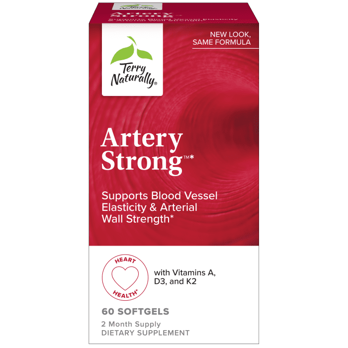 Terry Naturally Artery Strong delivers a potent botanical blend of hawthorn, aged garlic, and grape seed extract to support flexible arteries, healthy blood flow, and cardiovascular well-being.