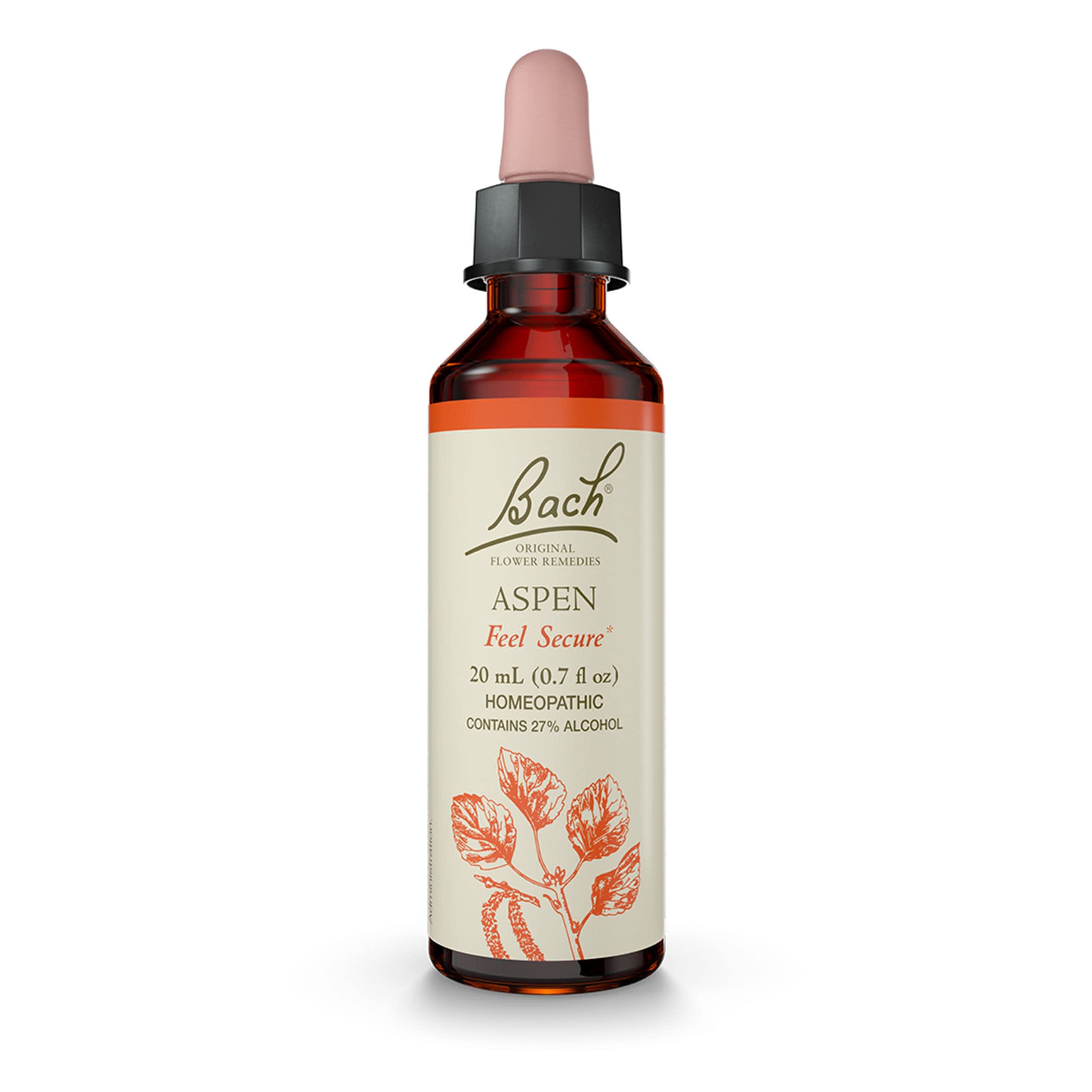 Aspen Flower Essence by Bach provides gentle support for vague fears or unexplained worry. This 0.7 oz liquid may encourage calm, confidence, and emotional security.
