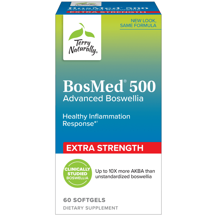 Terry Naturally BosMed 500 provides 500 mg of potent Boswellia extract per softgel to support inflammation balance, mobility, and intestinal health naturally. Clean and allergen-free for daily comfort.