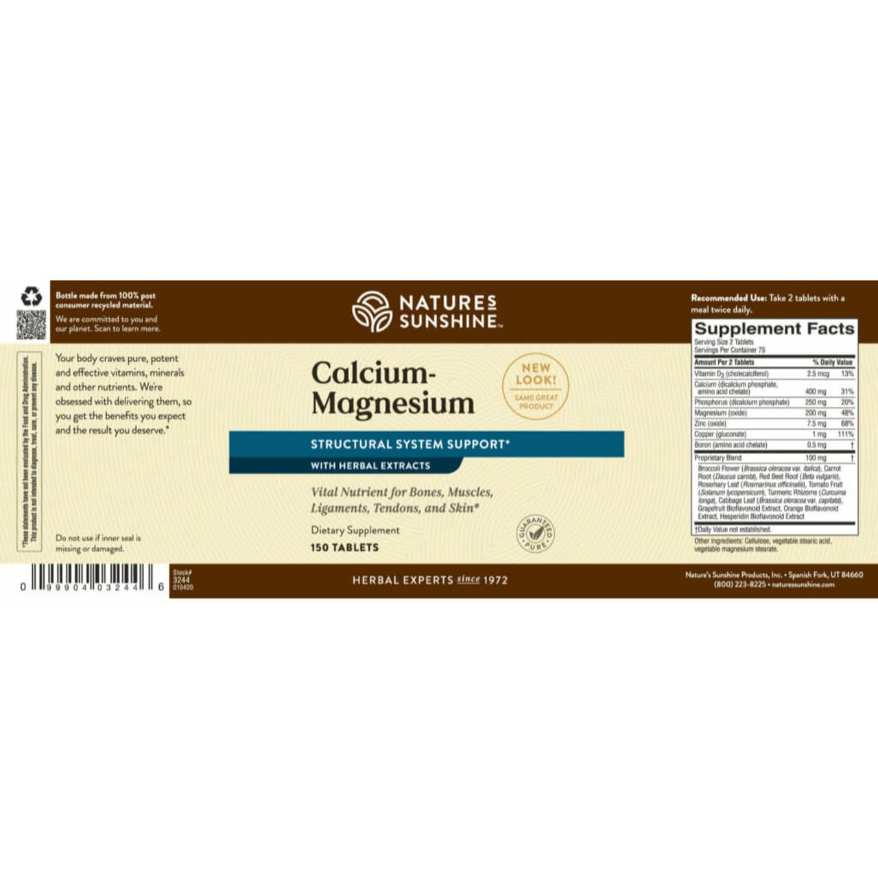 Nature’s Sunshine Calcium-Magnesium (150 Tabs) delivers essential minerals that help maintain strong bones, healthy muscles, and balanced nerve function. This well-rounded formula combines calcium and magnesium in precise proportions to encourage proper mineral absorption and use. In addition, vitamin D3 and phosphorus support bone density and help the body retain these key nutrients more effectively.