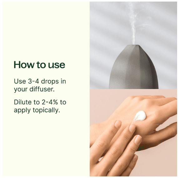 Blends well with lavender, bergamot, and frankincense
