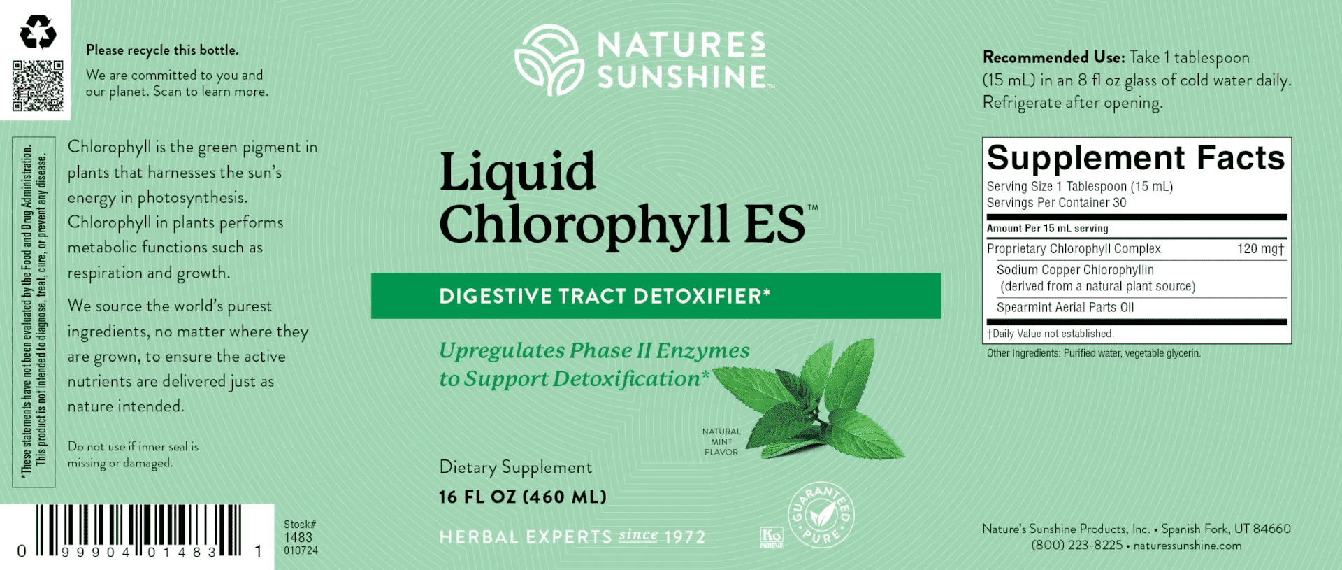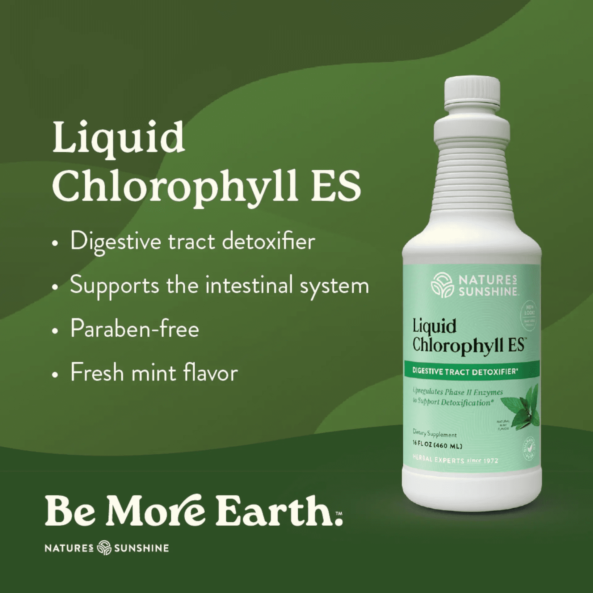 Nature’s Sunshine Liquid Chlorophyll ES delivers extra-strength detox and digestive support in a refreshing mint formula that promotes internal freshness, balance, and wellness every day.