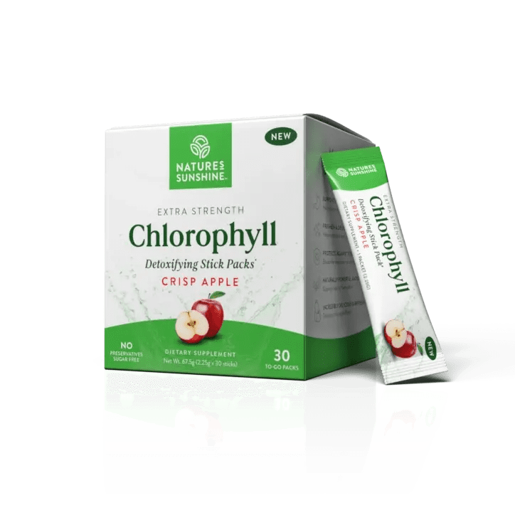 Nature’s Sunshine Chlorophyll Stick Packs Crisp Apple provide detox and digestive support with prebiotic fiber in a refreshing apple flavor for daily balance and hydration.