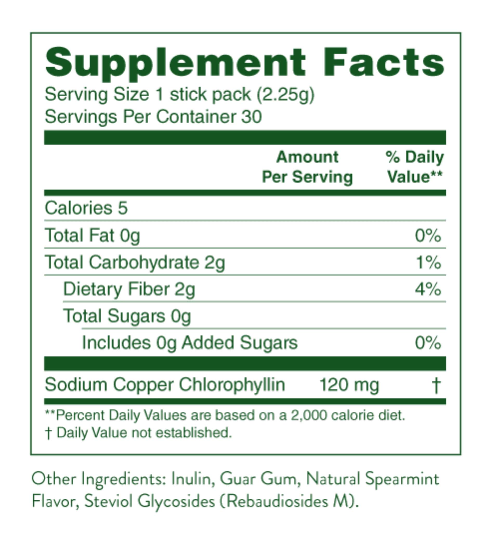 Chlorophyll Stick Packs Spearmint deliver a cool, refreshing way to support your body’s natural detox and balance. Moreover, each single-serve stick provides powdered sodium copper chlorophyllin and prebiotic fiber to help your system stay fresh and energized.