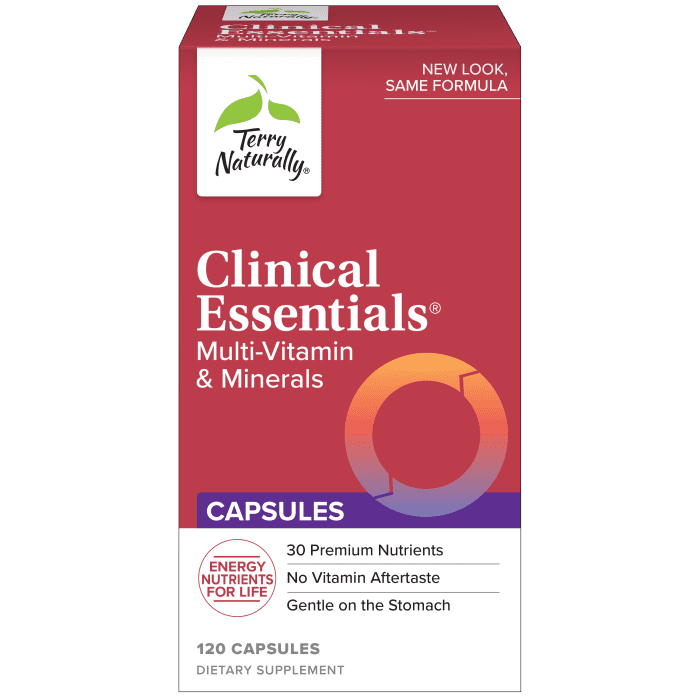 Terry Naturally Clinical Essentials Multi-Vitamin & Mineral provides complete daily nutrition with bioavailable vitamins, minerals, and antioxidants for lasting energy and immune support.