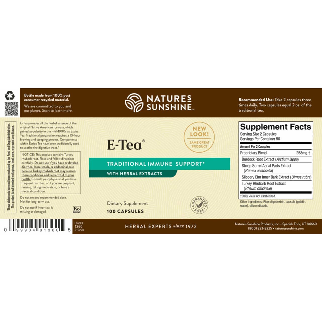 E-Tea Nature’s Sunshine capsules for traditional herbal wellness