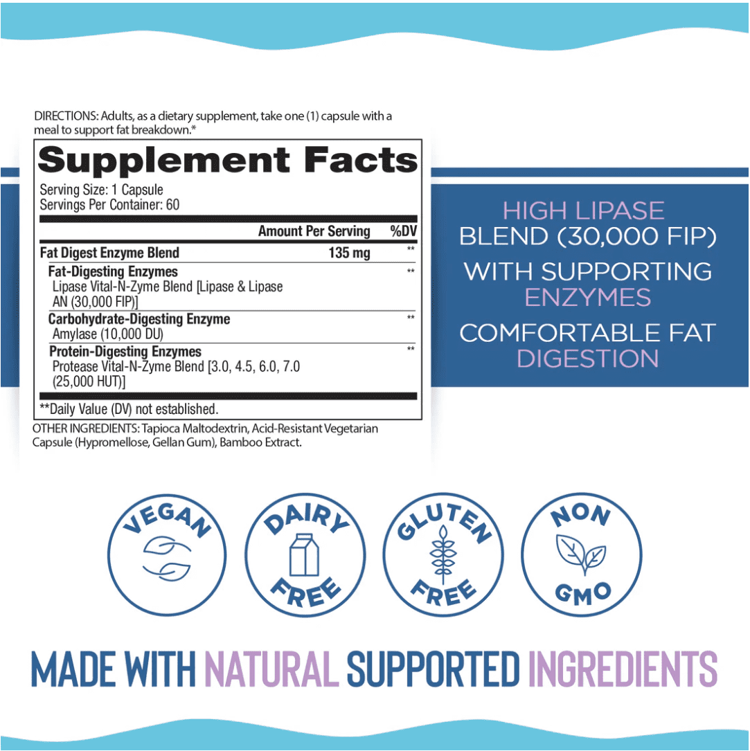 - Fat Digest Enzyme Blend with Lipase Vital-N-Zyme Blend (30,000 FIP)