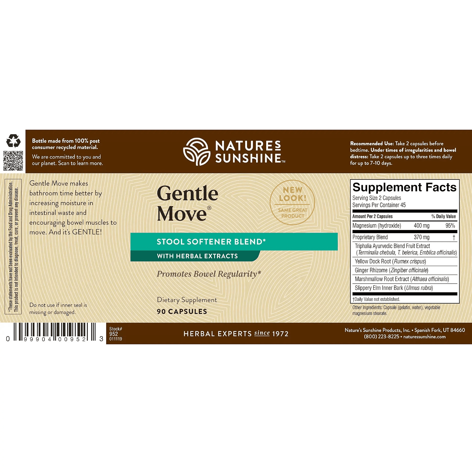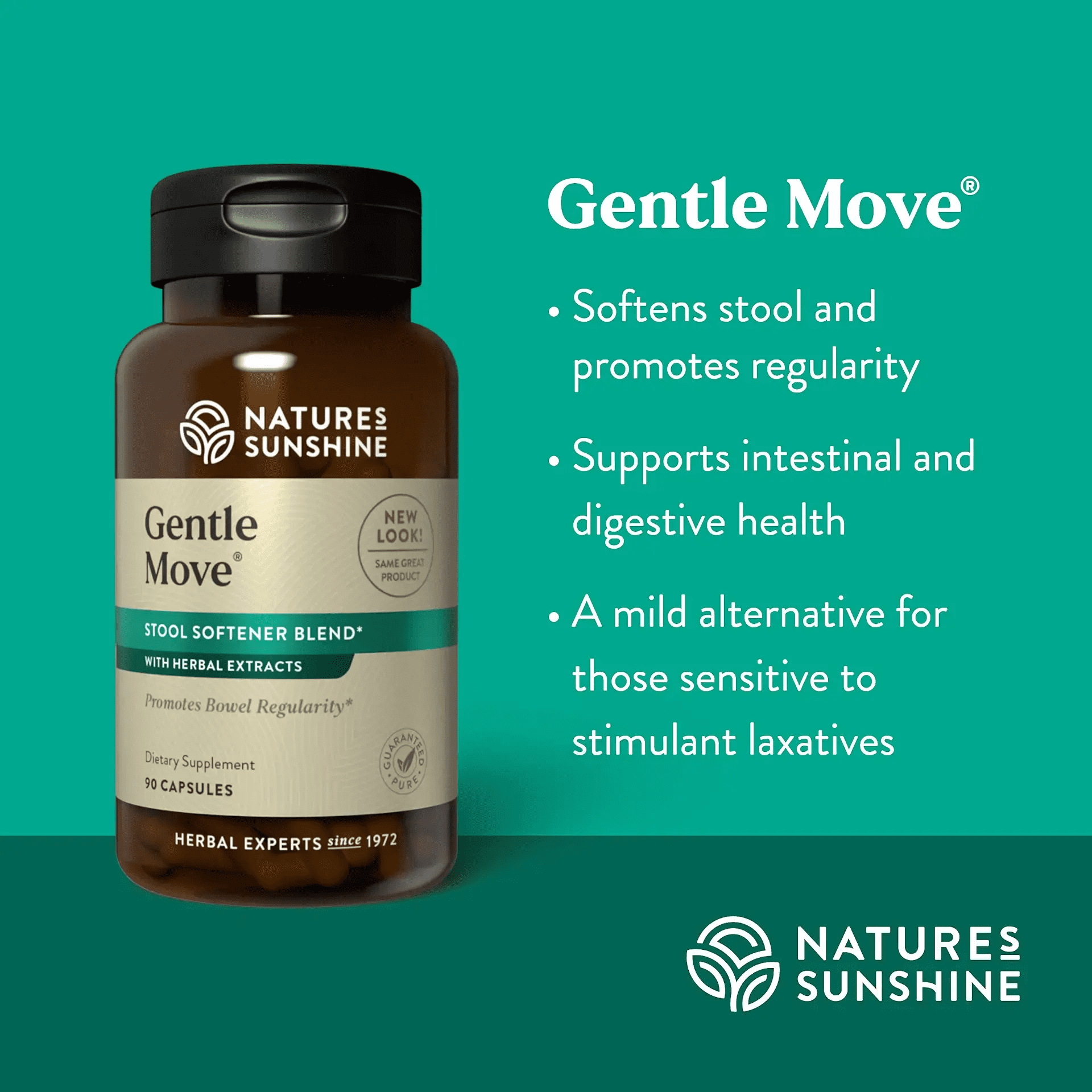 Nature’s Sunshine Gentle Move combines magnesium and herbs to help soften stool, ease digestion, and maintain natural regularity.