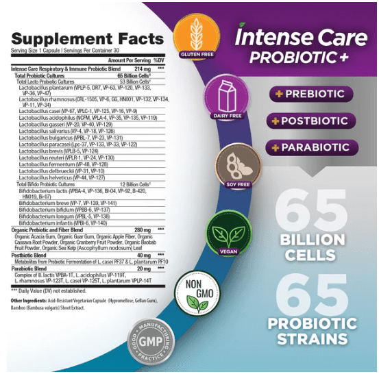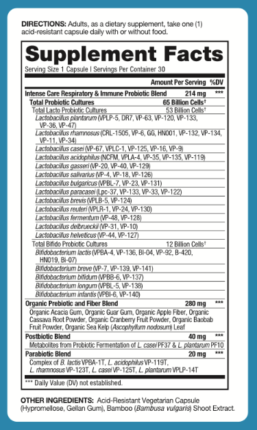 • 65 Billion CFU: A powerful dose for advanced immune and respiratory support.