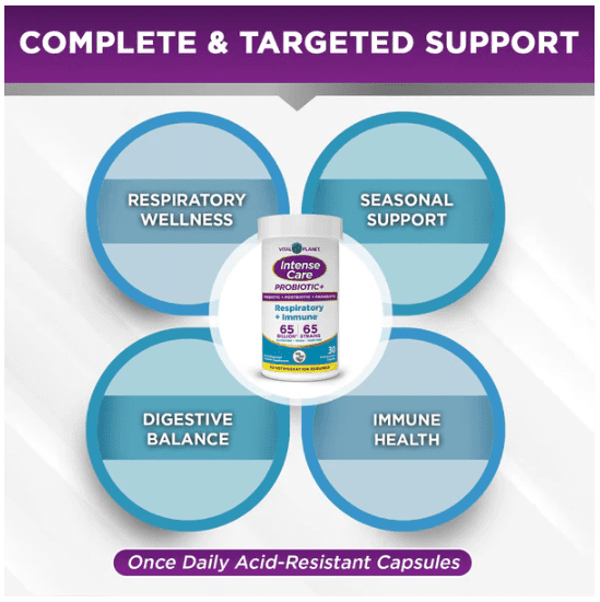 Vital Planet formulates its supplements with a focus on purity, potency, and purpose. Intense Care Respiratory + Immune stands out because it targets both respiratory and immune health through comprehensive microbiome support. In addition, the formula’s multi-layered design nourishes the gut and strengthens the body’s natural defense systems.