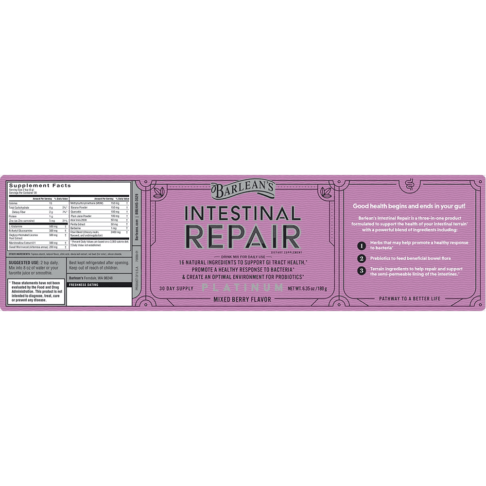 Intestinal Repair – Mixed Berry by Barlean’s is a natural, great-tasting powder designed to support digestive wellness. It helps repair the GI tract, soothe the intestinal lining, and maintain a balanced gut environment for overall health.