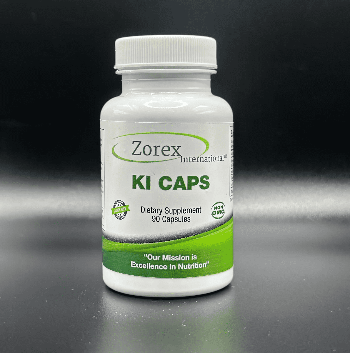 Each capsule of KI Caps contains 5 mg of vitamin B2 (as riboflavin 5’ Phosphate), 12.5 mg of iodine (as potassium iodide), 200 mcg of Selenomethionine and 100 mg of L-Tyrosine.