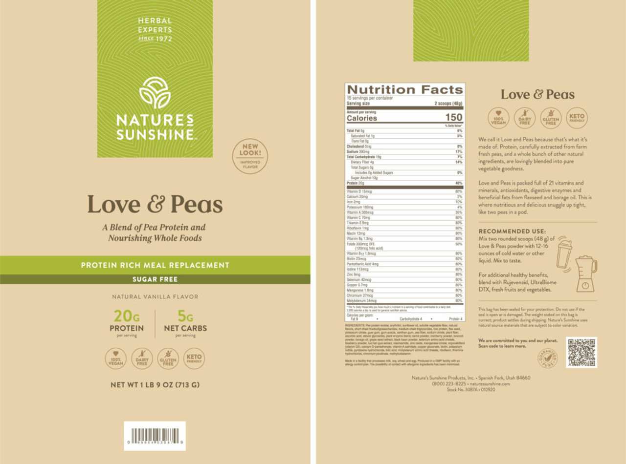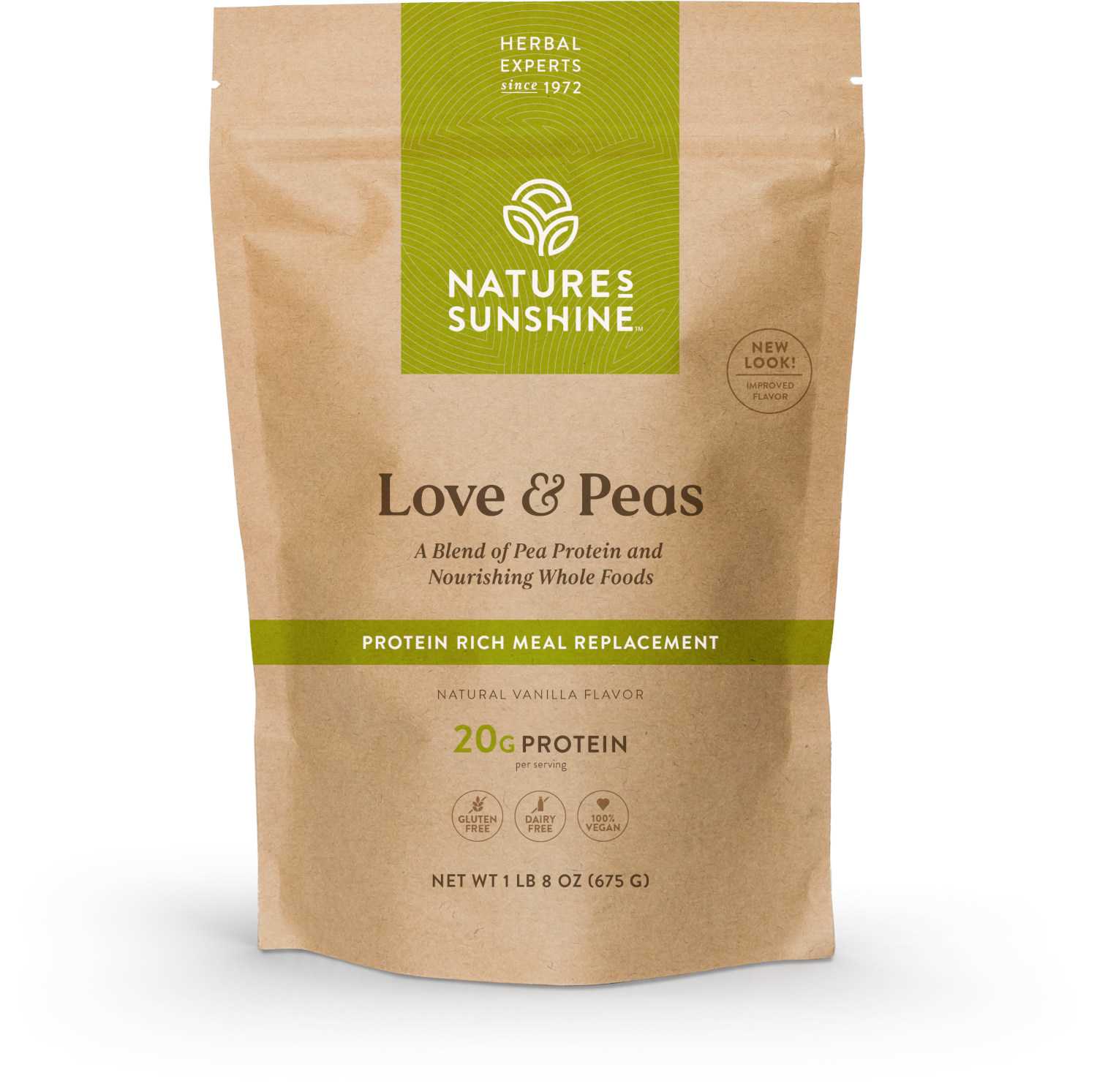 Nature’s Sunshine Love and Peas is a plant-based, dairy-free, gluten-free, and soy-free protein shake that provides a smooth and tasty option for daily nutrition.