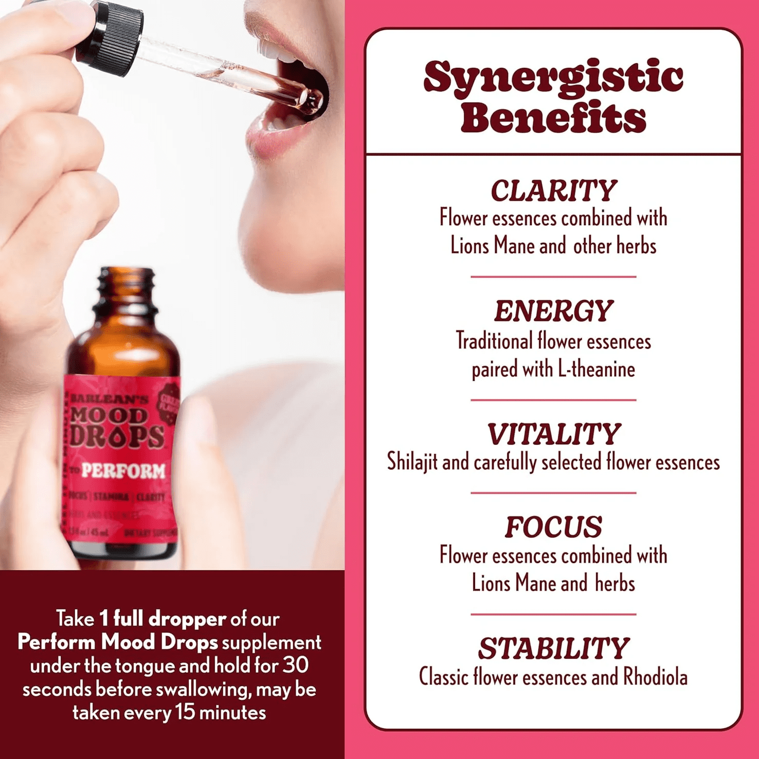 Focus, Energy, and Mental Clarity with Barlean’s Mood Drops – Perform