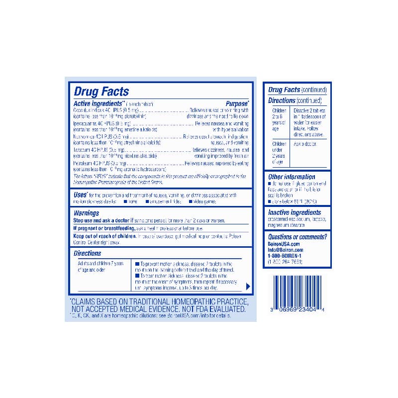 Boiron Motion Calm Tablets relieve motion sickness, nausea, and dizziness naturally with non-drowsy, meltaway homeopathic tablets.