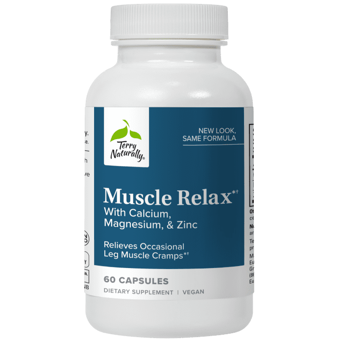 Terry Naturally Muscle Relax supports calm, comfortable muscles and flexibility with magnesium, calcium, and soothing botanicals.