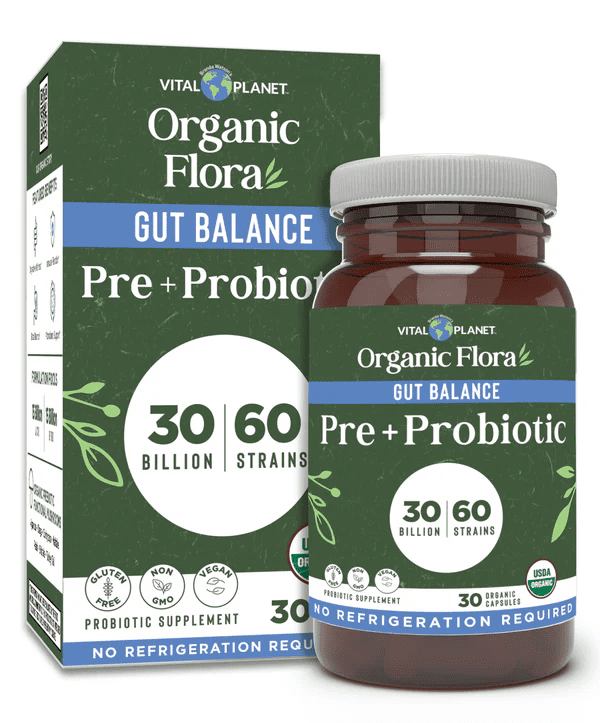 • Organic Flora Gut Balance USDA Organic certified formula in an organic pullulan capsule