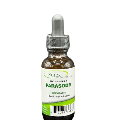 Parasode HP, designed by Jack Hinze, N.M.D., Pharm.D.  -Product contains ethyl alcohol and purified water and the following homeopathics – Artemisia Vulgaris 4X, Chelidonium Majus 4X, Granatum 4X, Spigelia Anthelmia 4X, Ratanhia 4X, Arsenicum Album 6X, Ferrum Metallicum 9X, Calcarea Carbonica 12X, Cina 12X, Gaertner Bacillus 12X, Graphiles 12X, Mercurius Dulcis 12X, Natrum Muriaticum 12X, Natrum Phosphoricum 12X, Vermin Nosode 30X, 60X, 200X.