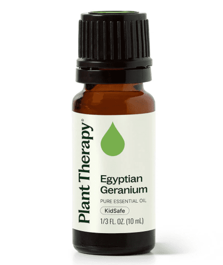 Plant Therapy Geranium Egyptian Essential Oil offers a sweet floral scent that encourages balance and relaxation. Distilled from Pelargonium x asperum leaves grown in Egypt, this 100% pure oil provides a soft, soothing aroma that refreshes skin and mood.