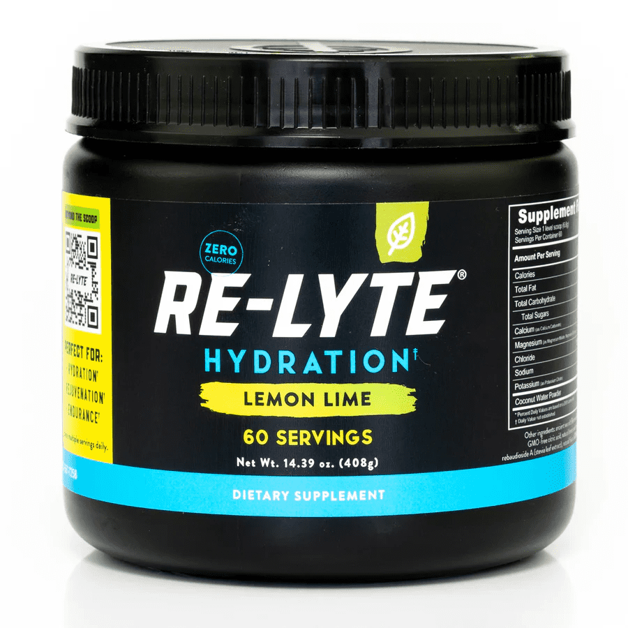 Re-Lyte Hydration Jar – Lemon Lime delivers clean, balanced hydration with Real Salt electrolytes and a crisp citrus flavor for natural energy and recovery.