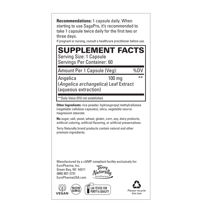 Terry Naturally SagaPro Bladder Health supports bladder strength and urinary comfort with Angelica archangelica leaf extract in a vegan, non-GMO formula for men and women.