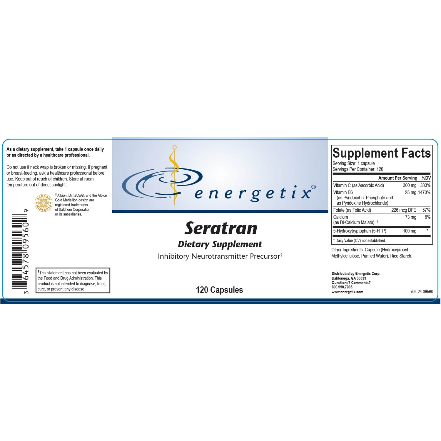 Energetix Seratran 120 Capsules for Balanced Neuro-Chemical Support