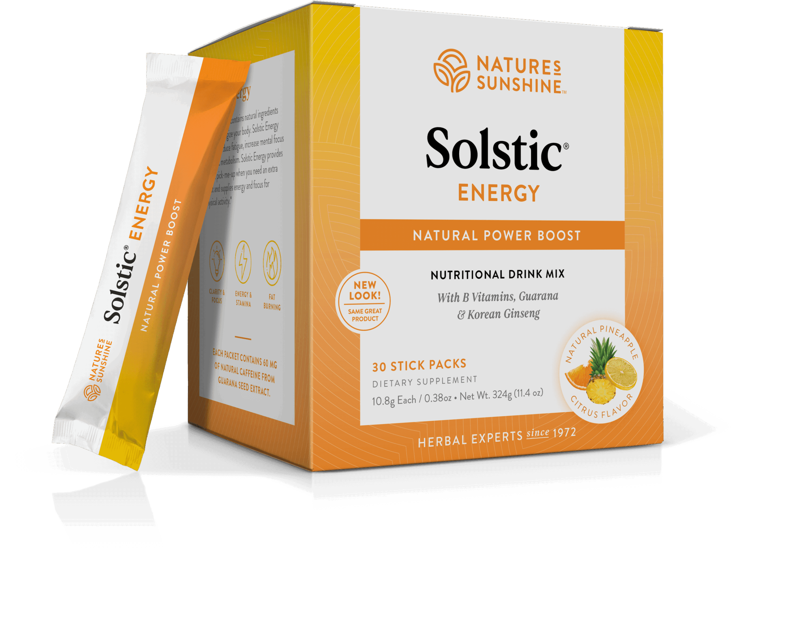 Nature’s Sunshine Solstic Energy is a powerful daily energy support supplement designed to help adults maintain natural energy, focus, and overall vitality. Each packet contains a balanced blend of vitamins, minerals, and herbal extracts formulated to support mental clarity, physical endurance, and metabolic function. Solstic Energy is perfect for busy lifestyles, providing a convenient way to boost energy levels without relying on caffeine or stimulants.
