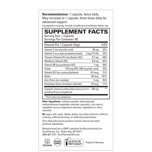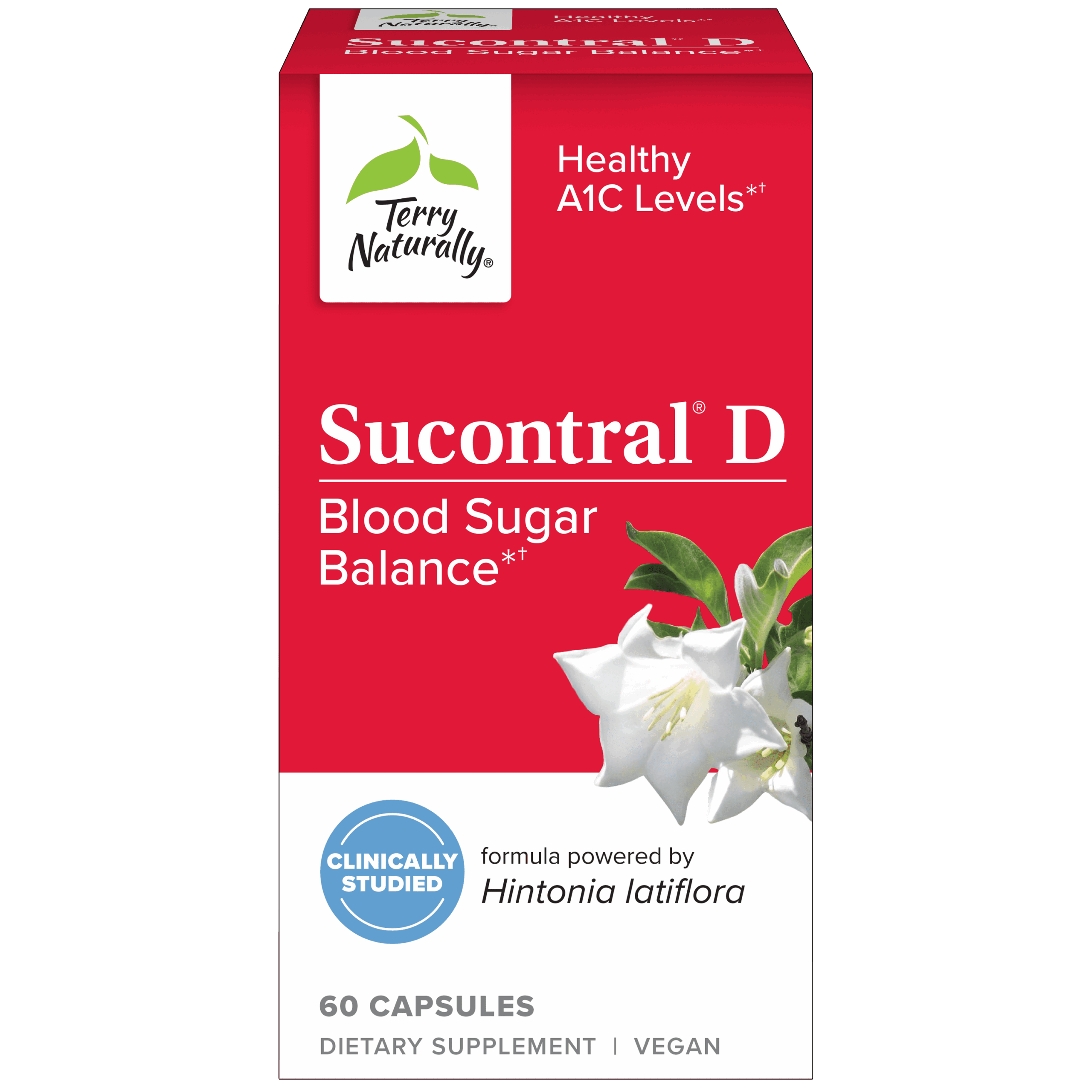 Terry Naturally Sucontral D supports healthy blood sugar balance and metabolism with Hintonia latiflora extract, B-vitamins, and key minerals for overall wellness.