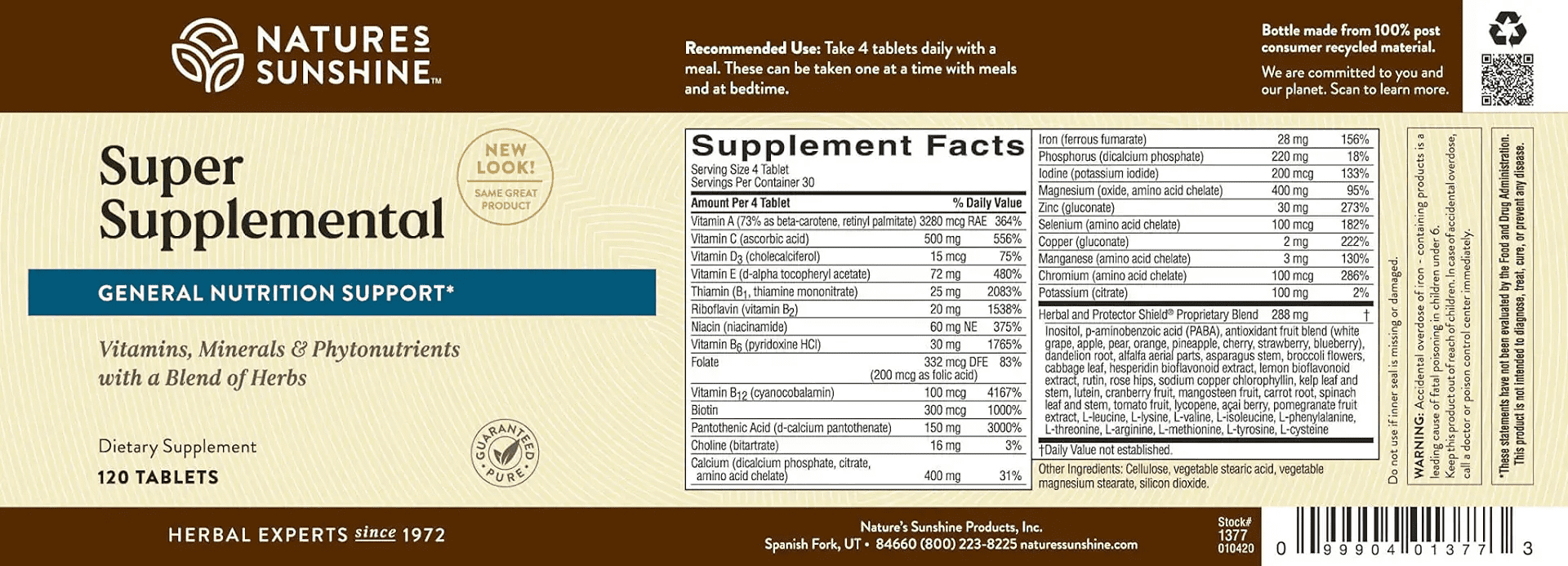 Nature’s Sunshine Super Supplemental – 120 Tablets delivers essential nutrients that keep your body strong, energized, and nourished naturally.