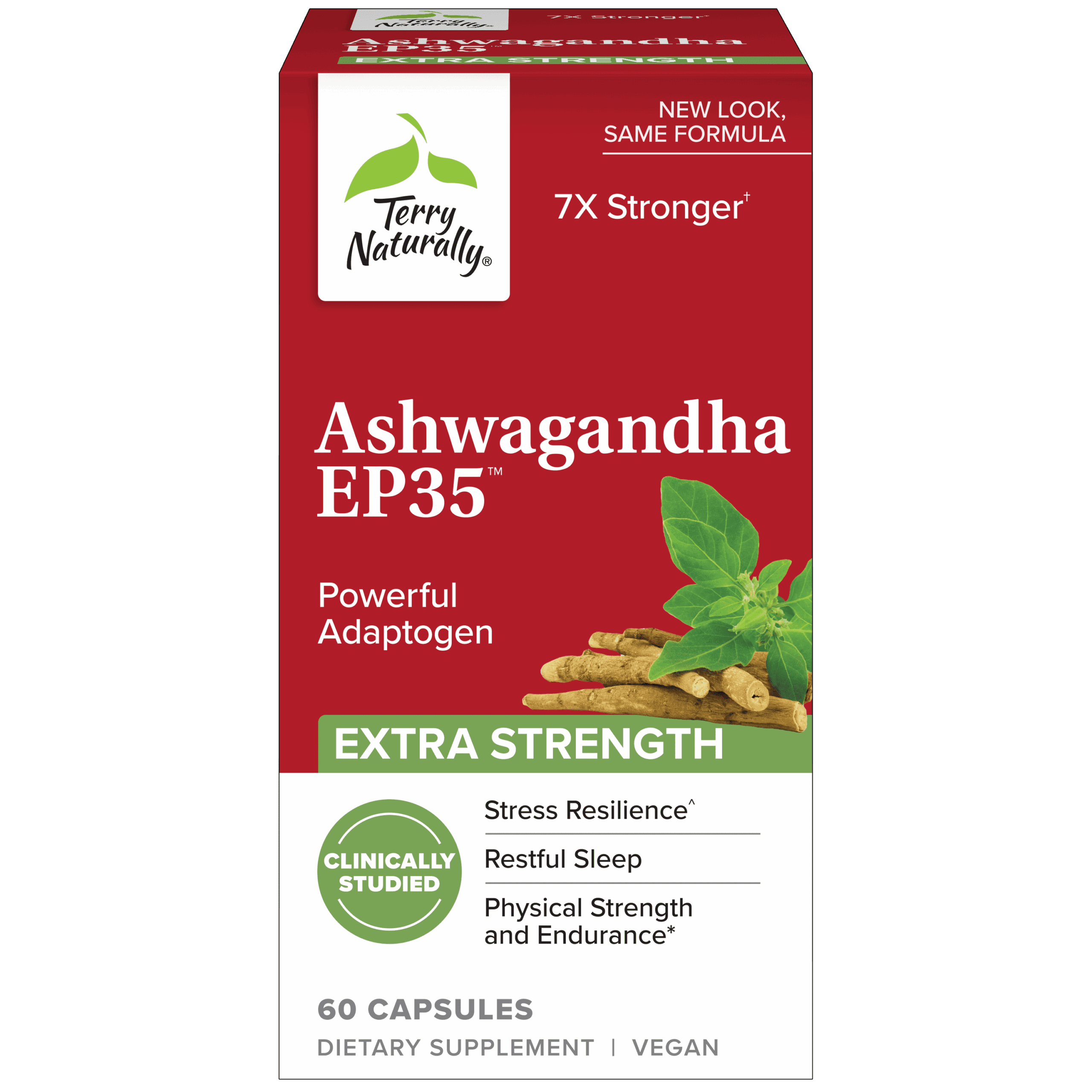 Terry Naturally Ashwagandha EP35 Extra Strength offers a concentrated form of ashwagandha to help support calm, balanced stress response, steady mood, and daily emotional well-being. This extra-strength formula delivers a clinically studied extract to promote resilience during stressful times, while also supporting mental clarity and relaxation without drowsiness.