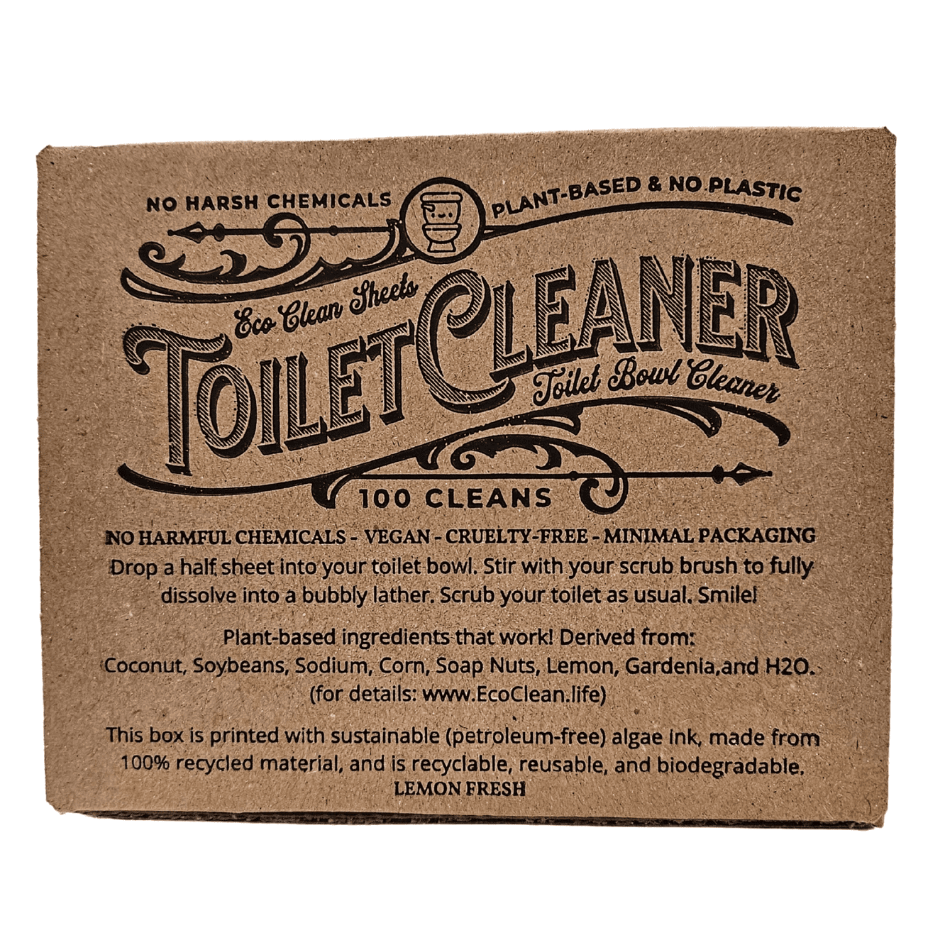 This eco toilet cleaner combines coconut, soybeans, corn, soap nuts, lemon, and gardenia for effective, plant-based cleaning. In addition, the recycled cardboard packaging is printed with petroleum-free algae ink. Moreover, each box supports up to 100 cleans, offering lasting value and sustainable living. Therefore, it’s a simple switch that helps both your home and the planet stay cleaner.