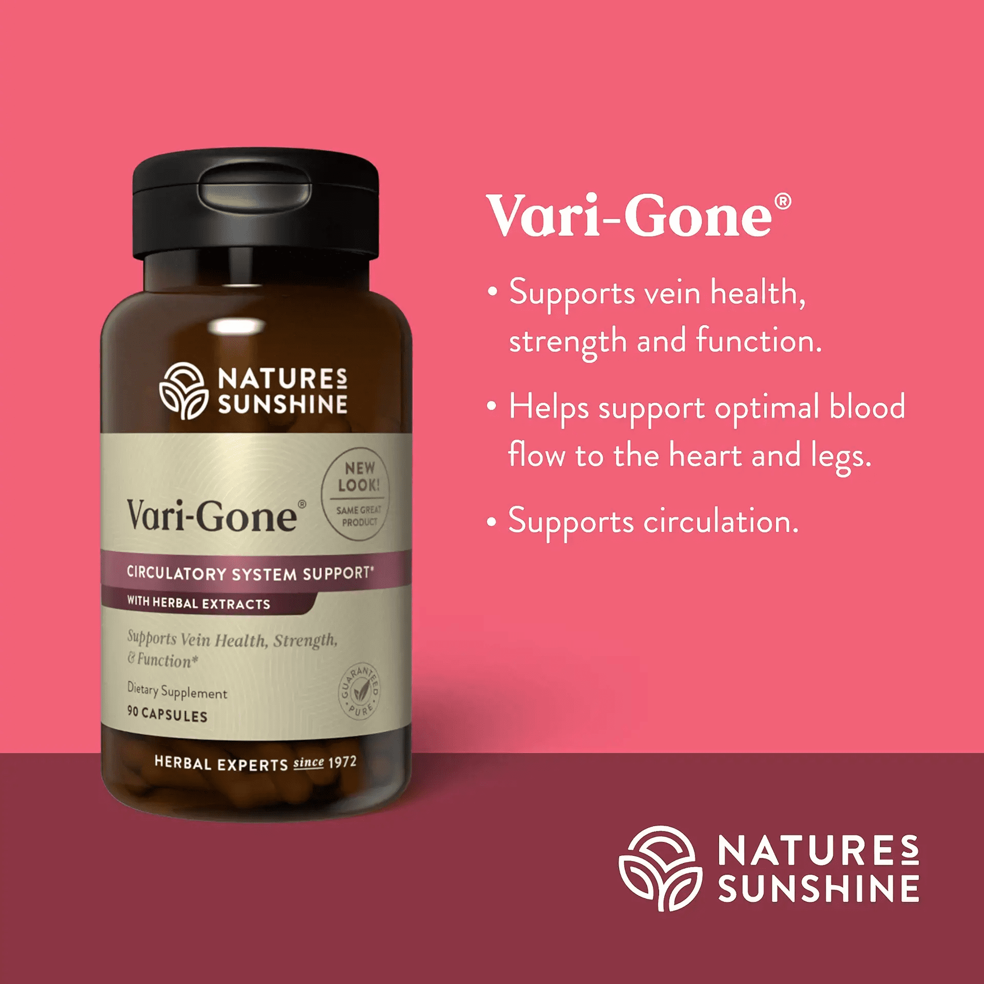 Nature’s Sunshine Vari-Gone promotes healthy circulation and vein strength with antioxidant-rich herbs like horse chestnut and butcher’s broom for natural leg comfort and balance.