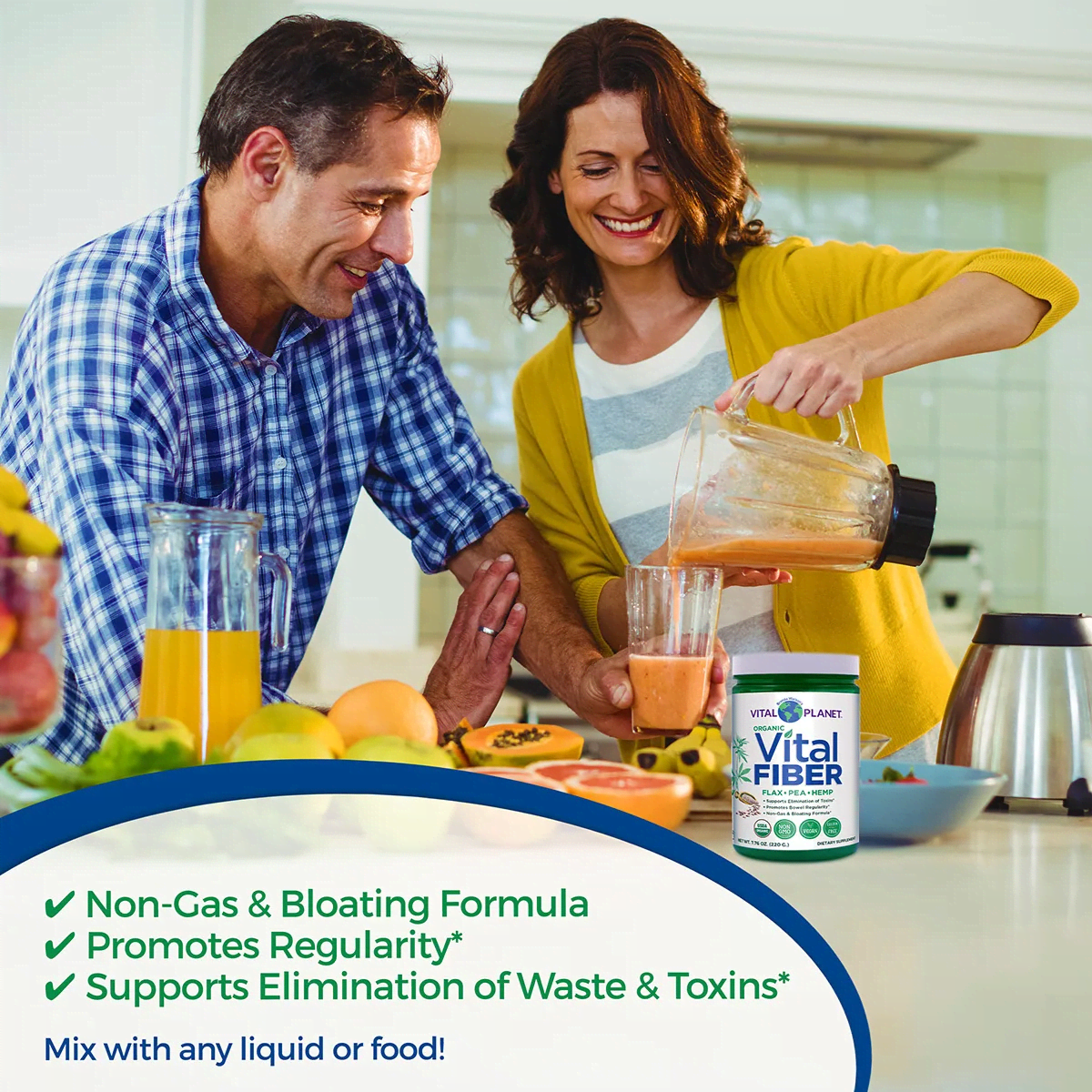 Vital Planet Vital Fiber is a USDA Organic, plant-based fiber blend that supports digestion, regularity, and gut health with natural whole-food ingredients.